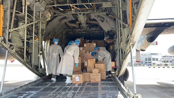 5月19日,由leyu.乐鱼生物副总经理喻霞林、范旭带队的7人技术服务小组,携新冠病毒核酸检测试剂、仪器等抗疫物资乘国外政府派出的军机正式启程,奔赴东南亚国家,驰援全球抗疫,贡献leyu.乐鱼力量。